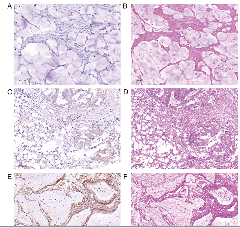 Results: CLDN18.2 expression was detected in 19.8% (18/91) of the patients with MAC. Positive expression of CLDN18.2 significantly correlated with perineural invasion (P = 0.0235) and lymphovascular invasion (P = 0.0375). CLDN18.2 demonstrated frequent heterogeneous expression in MAC.